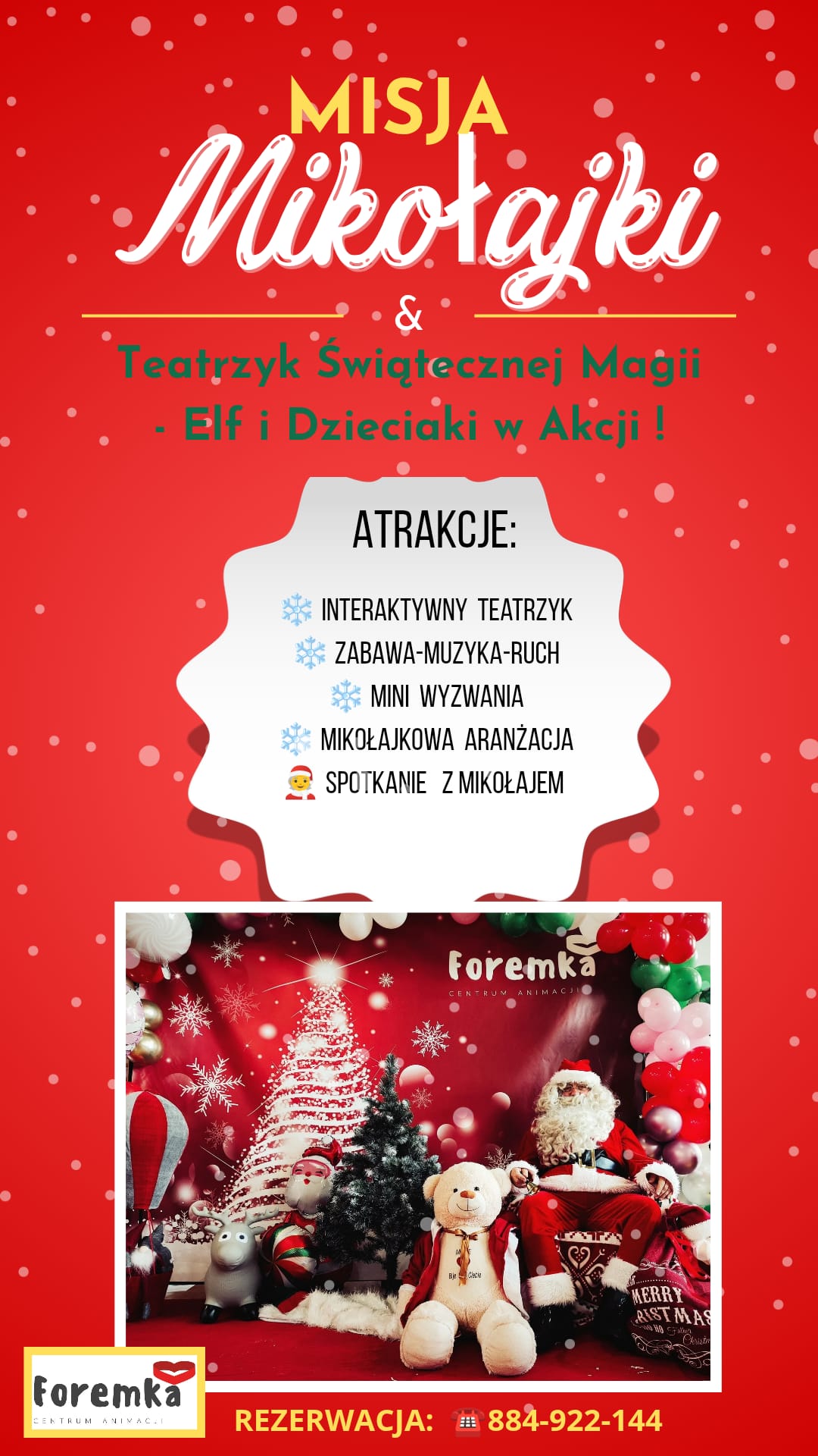 Podczas warsztatów dzieci przeniosą się do magicznej krainy Świętego Mikołaja, gdzie poznają sekrety życia elfów. Zajęcia łączą w sobie pracę zespołową, zabawę, zagadki i mnóstwo śmiechu.Program został przygotowany tak, aby rozwijać kreatywność, współpracę i wyobraźnię dzieci, a jednocześnie wprowadzić je w wyjątkowy, świąteczny nastrój.